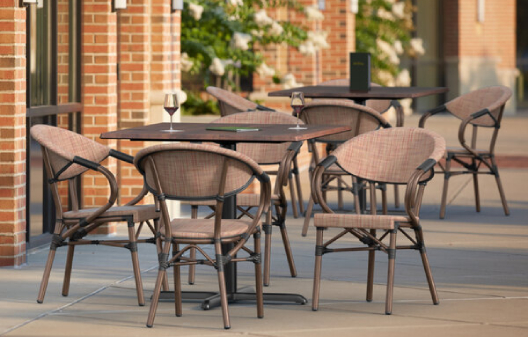 فضای غذاخوری پاسیو خود را با مبلمان رستوران در فضای باز ما تجهیز کنید. از صندلی های ضد آب گرفته تا چترهای رنگارنگ رومیزی، ما آنچه شما نیاز دارید را داریم.