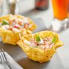 برای استفاده از سبد، کافی است یک تورتیلا 20 سانتی را روی هر فنجان پایینی قرار دهید، قسمت بالایی را پایین بیاورید تا تورتیلاها به شکل دلخواه در بیایند و سپس سرخ کنید!