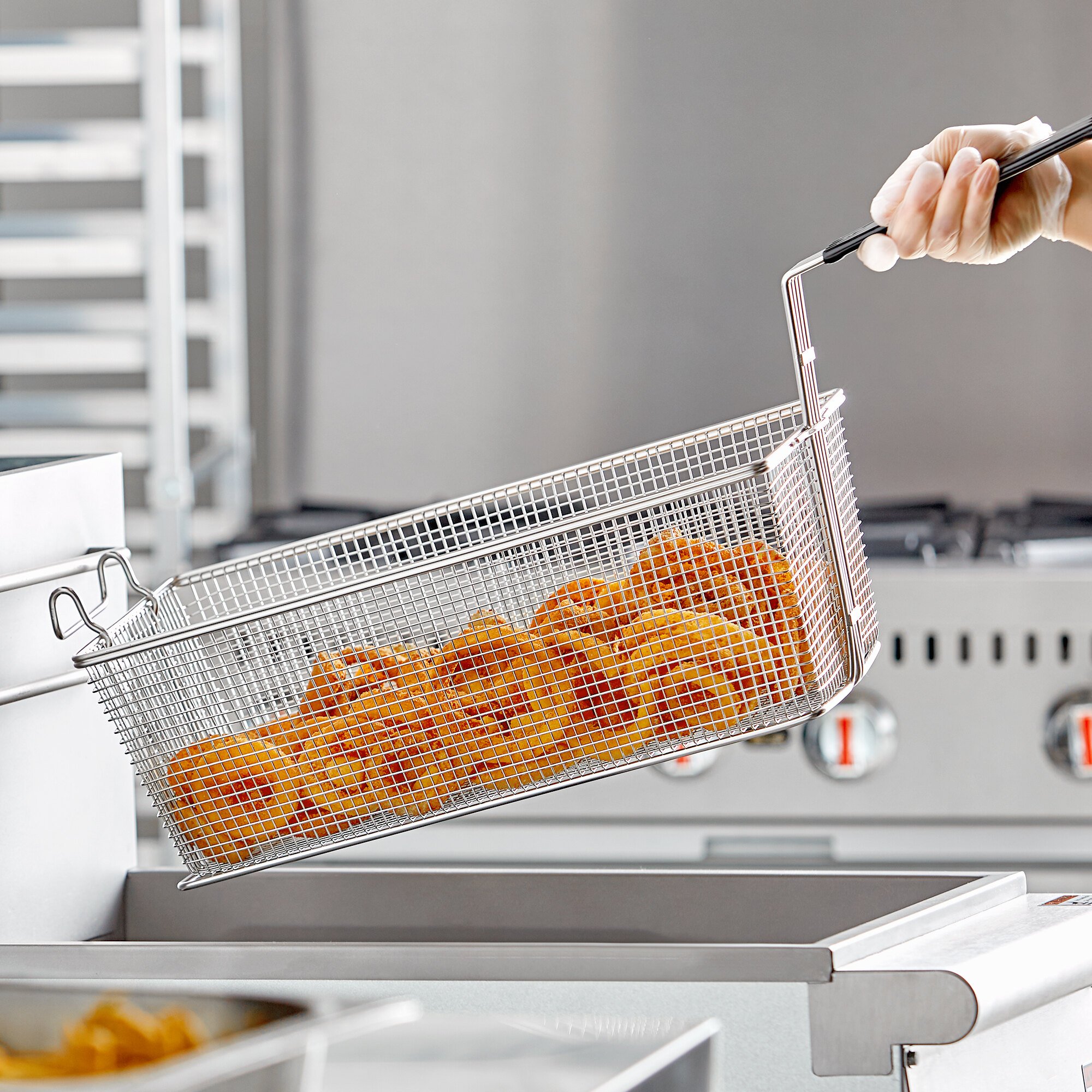 این سبد سرخ کن دوقلو 43 سانت 21 سانت 15 سانت Pitco P6072184 راهی عالی برای ارائه سریع سفارشات سیب زمینی سرخ کرده، چیپس، چوب موزارلا و سایر غذاهای سرخ شده مورد علاقه است! این سبد دارای یک طراحی دسته خنک روکش شده است. که گرفتن راحت می دهد و از انتقال حرارت اضافی جلوگیری می کند، بنابراین حتی در شیفت های پرمشغله شما و کارمندانتان می توانید بدون خطر سوختگی یا ناراحتی به سرخ کردن ادامه دهید. علاوه بر این، توری فولادی ضد زنگ 304 مقاوم در برابر خوردگی، دوام عالی را در هر محیطی ارائه می دهد و در قسمت جلویی قلاب با اکثر سرخ کن ها سازگار است و آویزان کردن سبد را در زمانی که از آن استفاده نمی شود آسان می کند. برای استفاده با انواع سرخ کن ها از مارک های معروف مناسب است و در مقایسه با قطعه اصلی صرفه جویی قابل توجهی دارد! یک سبد شکسته را جایگزین کنید، یا یک سبد اضافی را برای زمانی که به آن نیاز دارید در اختیار داشته باشید.